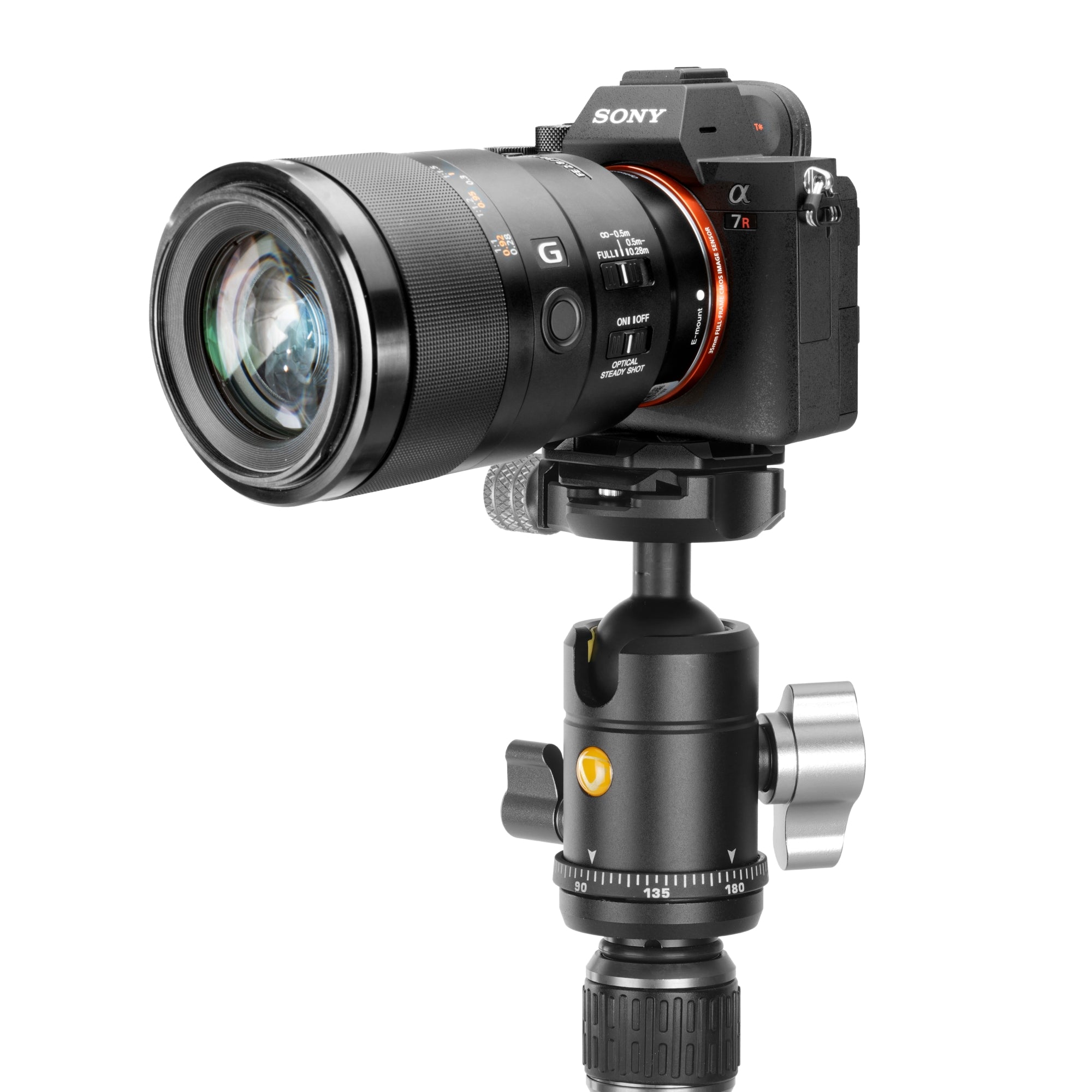 Compatible con la mayoría de trípodes y monopies gracias a su rosca estándar ¼", e incluye zapata de liberación rápida tipo Arca con tornillo de anillo en D para montar y desmontar la cámara con rapidez y seguridad.